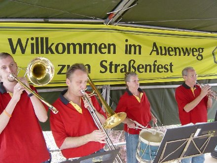 Daar is een groot straatfeest. Uitermate gezellig. En wat heel mooi is: de opbrengst is voor het goede doel. De organisatie, waarin o.a. Math Schaepkens zit, heeft een hele hoge pet op van De Eekheuëre. Al drie jaar bezoeken ze met 10 tot 12 mensen onze grote Sjpaszitting. Bovendien speelt Auenweg al een aantal jaar mee bij ons Sjpassemiger Foetbal Tref. Dat Akseptabel al een aantal jaren op hun straatfeest speelt, weten ze uitermate te waarderen. Natuurlijk hebben De Eekheuëre en Akseptabel Gesjravel heel veel links met elkaar. Dat Auenweg echter geen verschil meer maakt tussen Eekheuëre en Akseptabel is wel bijzonder! Kijk maar eens goed naar het affiche. Gelukkig zitten we daar niet zo mee. Dus zal Akseptabel zaterdag weer zijn beste beentje voorzetten. Ze spelen tussen 17.00 en 19.00 uur twee blokken. Het is niet ver, dus kom eens kijken. Over de autobaan richting Würselen, dan Stollberg, dan Mausbach. Gemakkelijk te vinden!