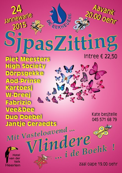 Och ja, over elke jurering kun je uren redetwisten. Dat is zelfs bij The Voice of Holland zo. Véél belangrijker is het dat Heerlen genoeg creatievelingen kent die tijd en geld steken in het maken en presenteren van sjlagers. TOP! Zo ook Vee & Dee. Jaarlijks garant voor een pareltje aan de sjlagerketting. Zij eindigden als achtste en kregen hun maximale score van de Media jury: 7 punten. De overige jury’s vonden het nummer middelmaat. Nou wij niet hoor. ‘Vasteloavesvlinder’ is een toppertje en samen met het Eekheuëre motto ‘Mit Vasteloavend vlindere in de boehk’ wordt carnaval 2015 weer eentje om in te lijsten.